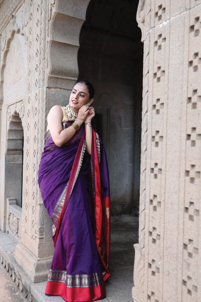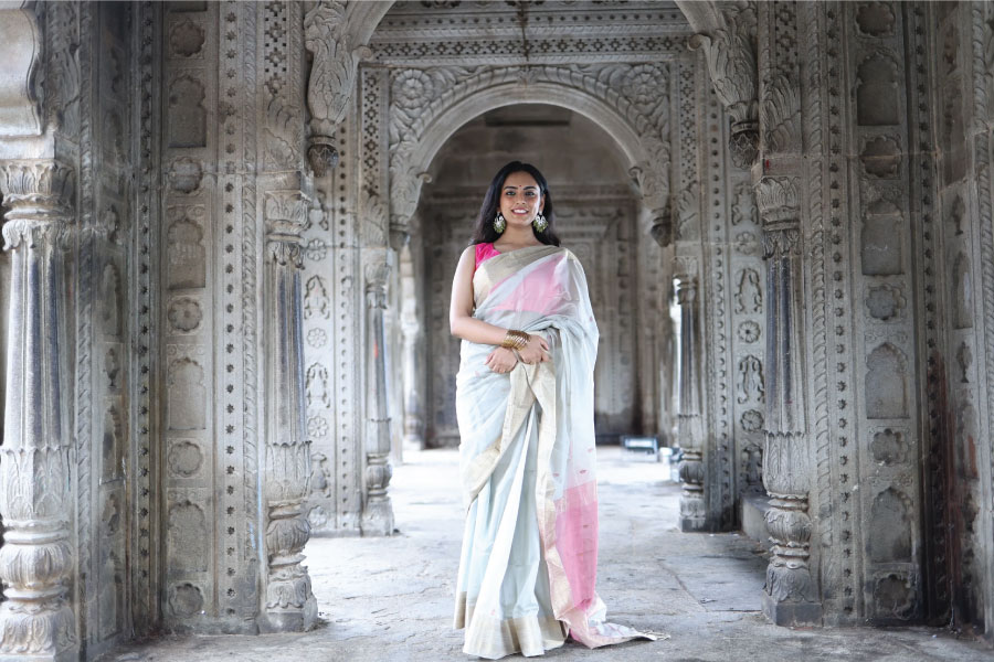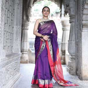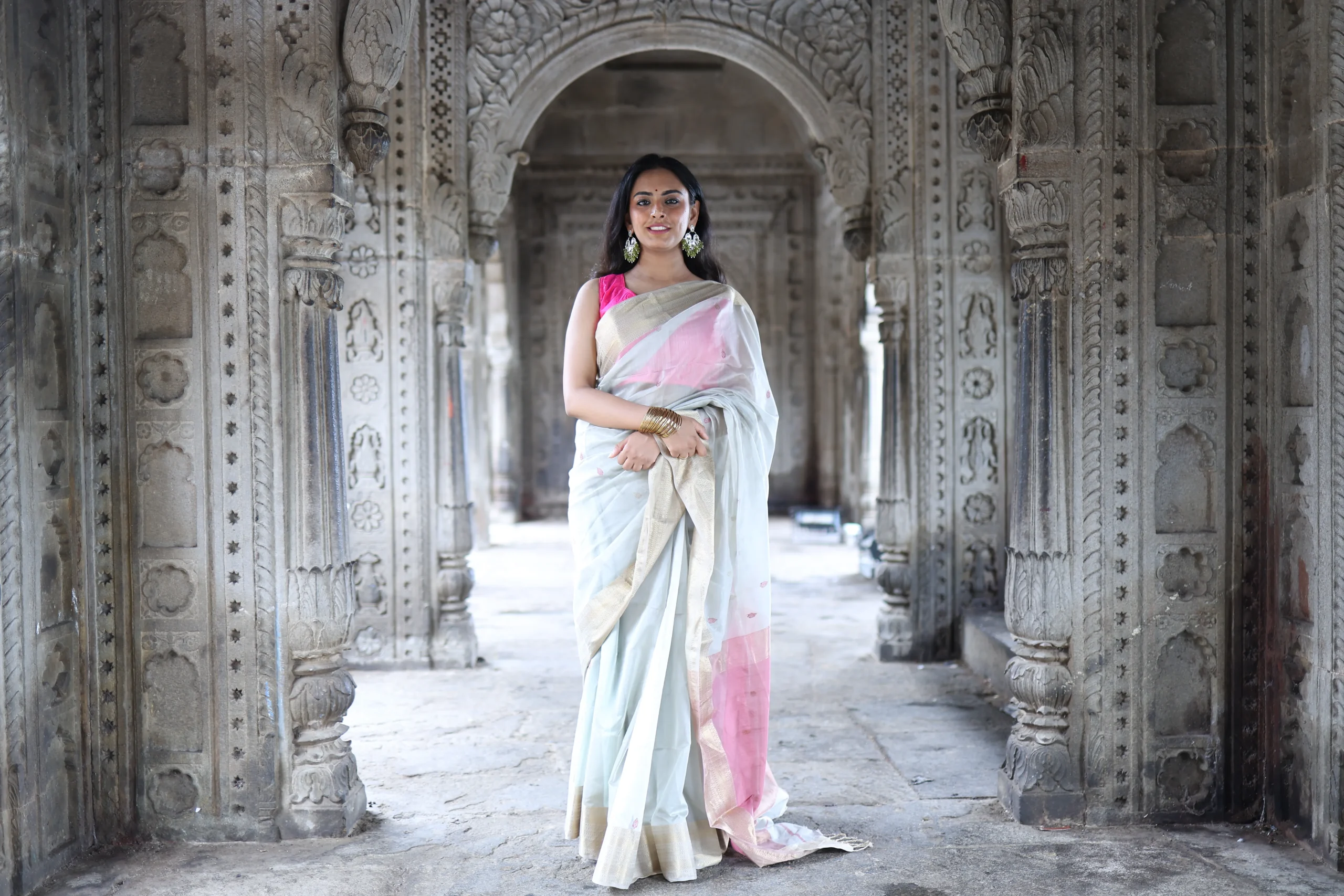Shravati is woven in soft cotton-silk Maheshwari Sarees - light, breathable, and built for movement. These are drapes designed for the woman who moves through roles without missing a step. The stripes are subtle, the finish is clean, and the comfort is immediate. From temple mornings to busy workdays, Shravati carries handloom heritage with grace - not weight.