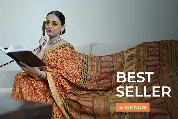 Block and Bagh-printed sarees inspired by nature — breathable, artisanal, and made for slow mornings and subtle style.
