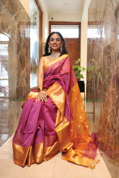 “Got this saree for my mom and she absolutely loved it. The colours were even better than the photos. little delay in delivery but they told me in advance, and it was because it was still being finished by hand. Honestly, you can see the effort. Totally worth the wait… will order again for sure for the festive season.”