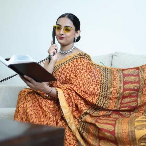 These handloom Maheshwari Sarees are block-printed on cotton-silk blends, featuring motifs drawn from vines, leaves and earth. The drape is light. The style is grounded. Perfect for festive mornings, family gatherings or quiet weekends — Aranya brings nature and tradition together in a form you’ll want to wear again and again.