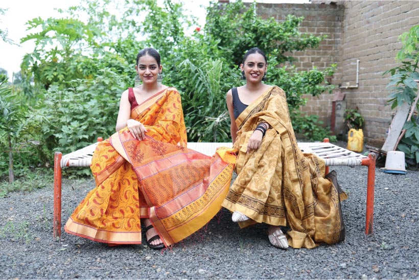 Aranya Collection – Hand-Printed Maheshwari Sarees